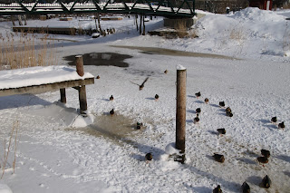 Nere vid kanalen krymper vaken för fåglarna och de kommer rusande emot oss i hopp om att vi har bröd med oss. Men tyvärr inte idag.